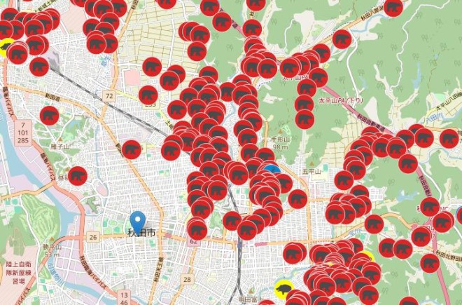 秋田のクマダス。実家の近く含め市街地でも多数の出没…。