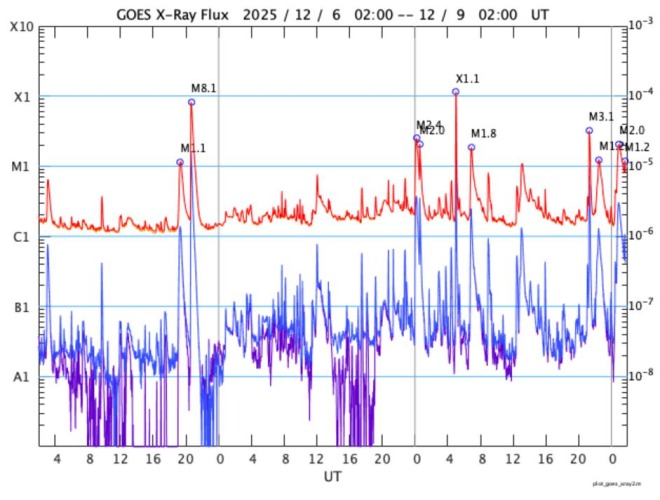 興味深いことにほぼ同時期に太陽活動が強まっている状態で、太陽フレアの階級で最大最強を示すXクラスの「X1.1」フレアが12月8日に観測されています。