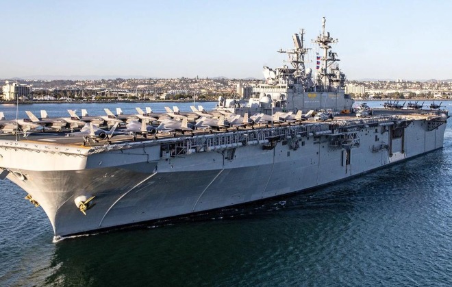 USS Tripoli, an America-class amphibious assault ship displacing 45,000 tons, is steaming from its forward base in Sasebo carrying the 31st Marine Expeditionary Unit: 2,500… pic.twitter.com/xsbxIWtCik